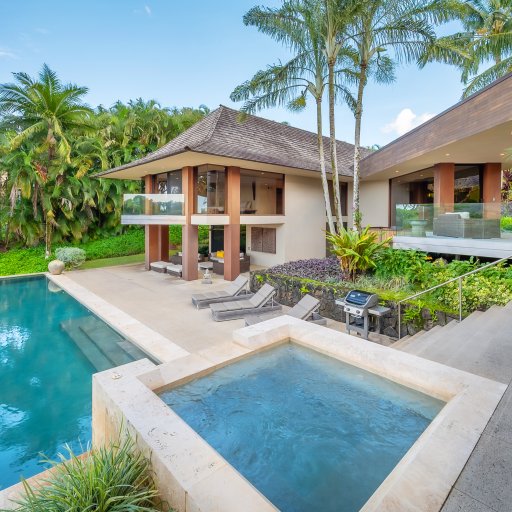 This incredible gated estate is perched above Kahili Makai Beach with panoramic views