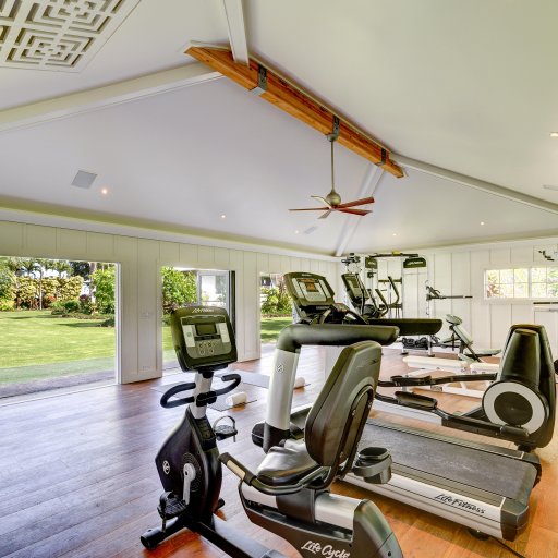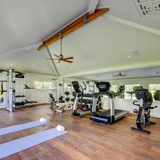 • Gym: stationary bike, eliptical machine, massage chair, inverter, cable cross over, free weights & benches