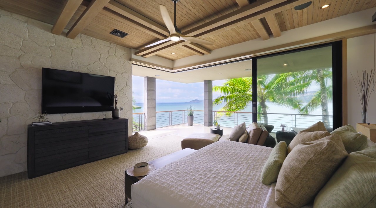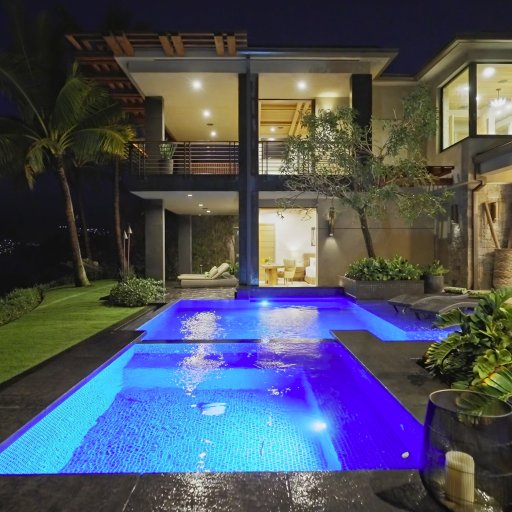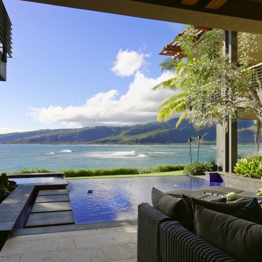 Ultra-luxury modern villa on Oahu’s southeastern shoreline with uninterrupted ocean, coastline, and sunset views over Maunalua Bay.